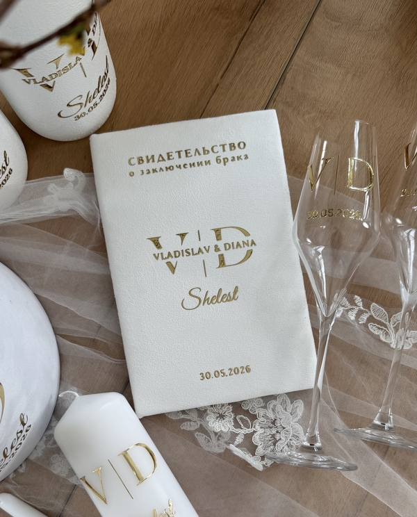 свадебный замок, подвязку, бокалы с гравировкой, семейный очаг с подсвечником и др.